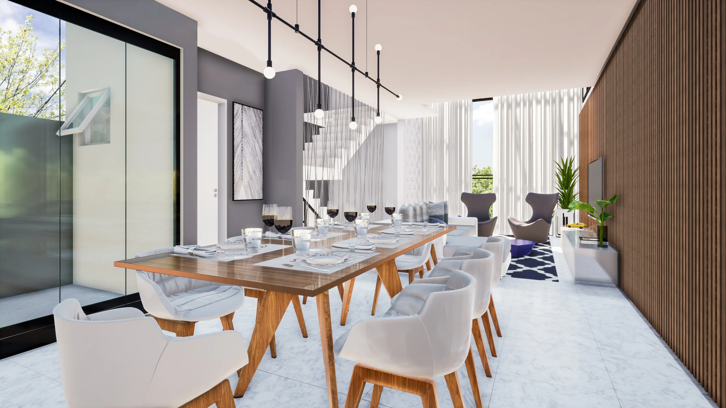 Essa área social totalmente integrada, permite uma interação constante com quem estiver nesse espaço.
